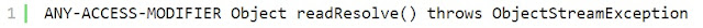 Модификатор доступа может быть private, protected и по умолчанию (default). Можно, наверное, сделать его и public, но смысла я в этом не вижу. Назначение этого метода — возвращать замещающий объект вместо объекта, на котором он вызван.