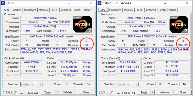 Свежий пример безвредного и даже полезного обновления ревизии — это выход степпинга B2 для процессоров Ryzen. Тогда как первые модели семейства Vermeer использовали кремний степпинга B0, новый Ryzen 7 5800X3D с гибридным кэшем на борту стал строиться на базе кремния степпинга B2. По словам экспертов, которым довелось откатать новый чип и сравнить его характеристики с оригинальным семейством, новый степпинг гарантирует пониженные токи утечки. Это значит, что транзисторы в новом чипе работают четче и могут функционировать без ошибок при более низком напряжении.